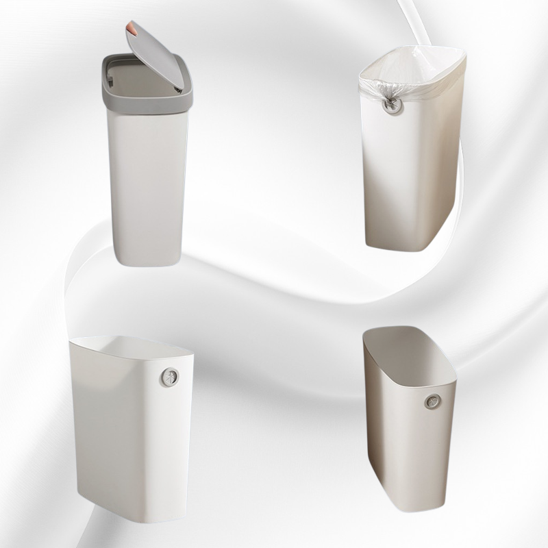 무압링 쓰레기통, 거실·화장실·주방 등 틈새 공간에 적합, 뚜껑 없는 디자인으로 편리, 방수 및 오염 방지 기능, 가정용으로 실용적 사용 가능