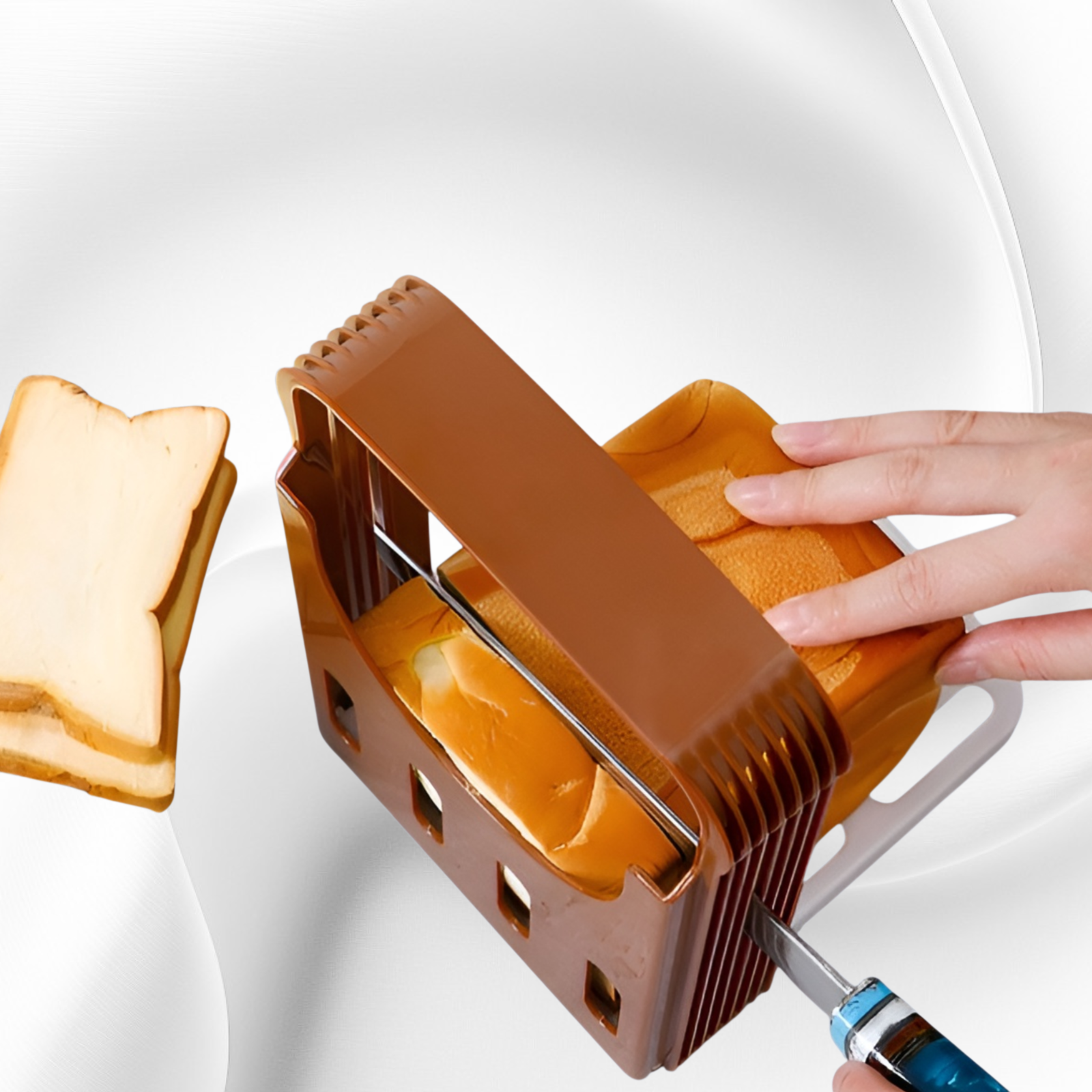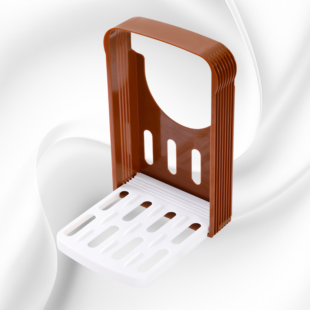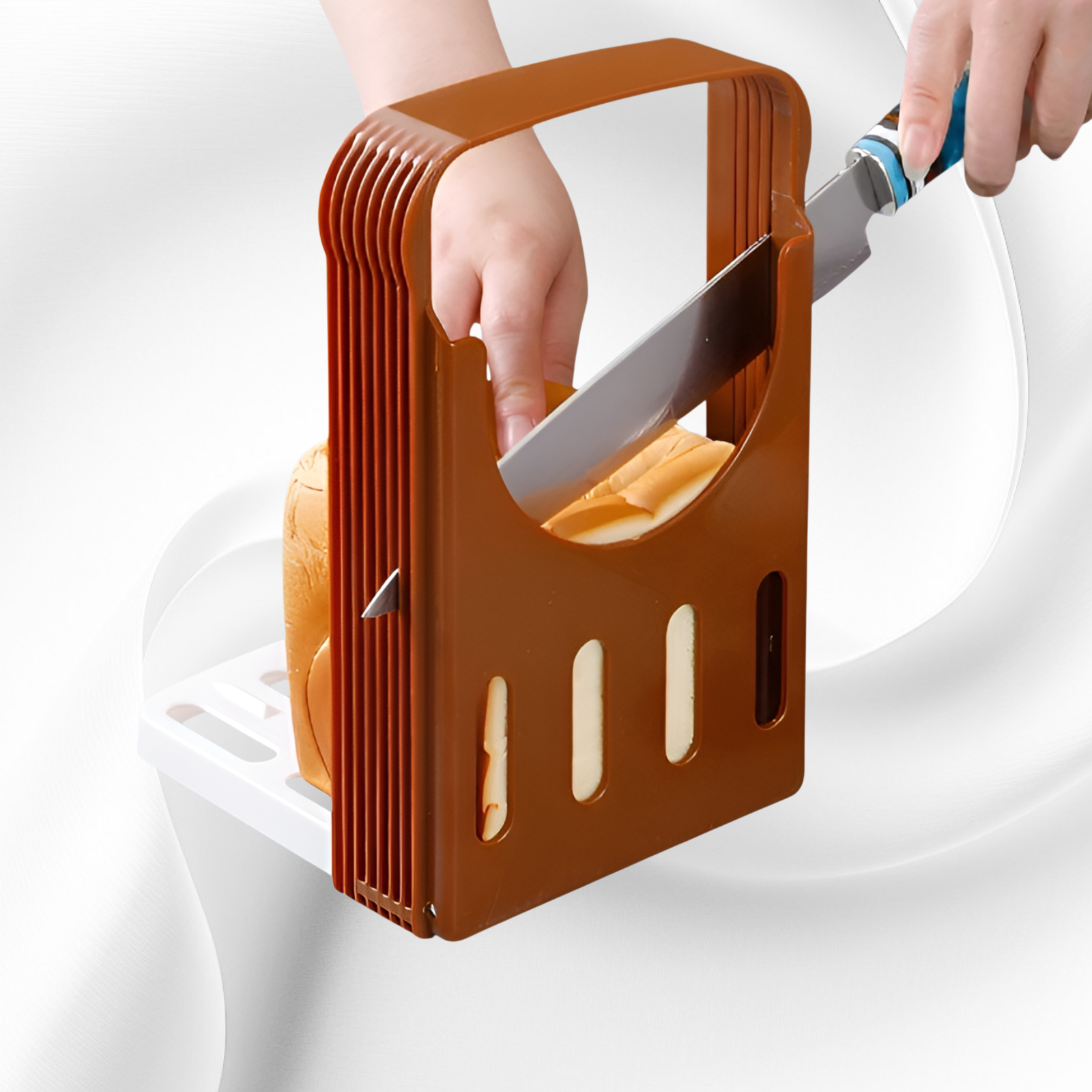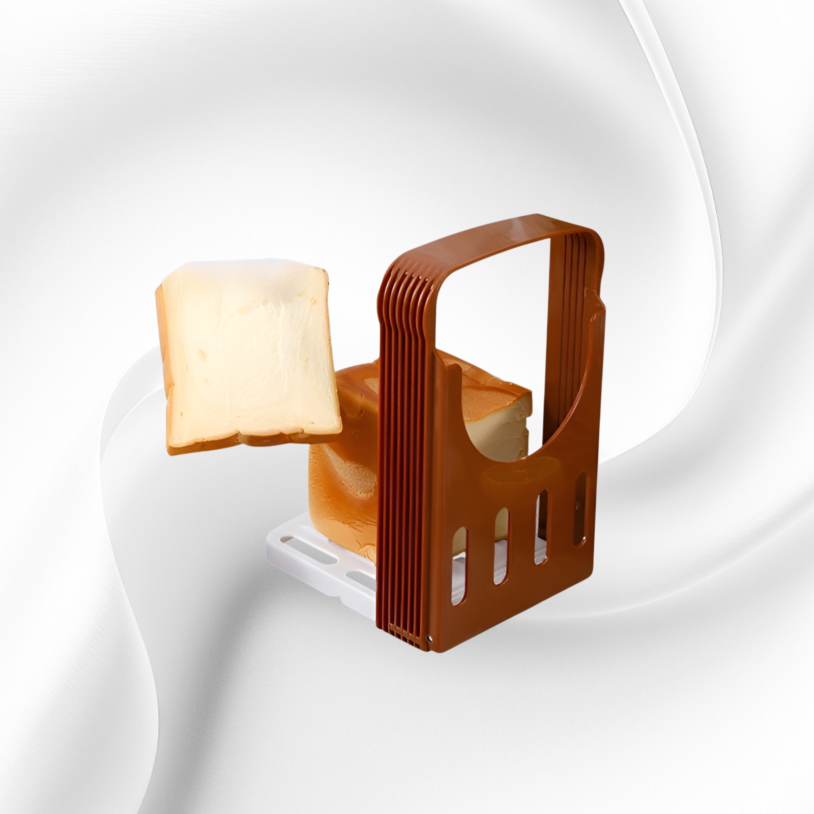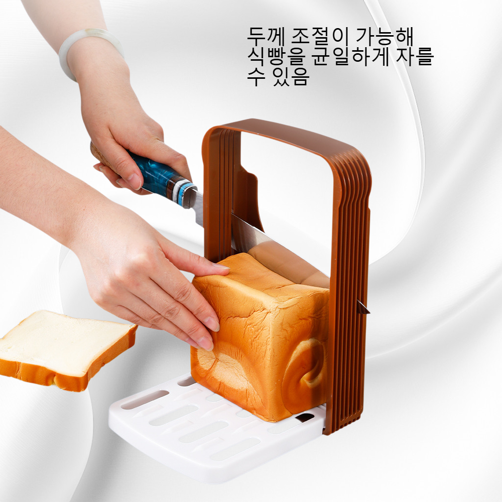 가정용 접이식 식빵 슬라이서로 빵을 균일하게 자를 수 있음. 공간 절약형 설계와 손쉬운 세척, 다양한 두께 조절 가능. 베이킹 도구로 적합함.